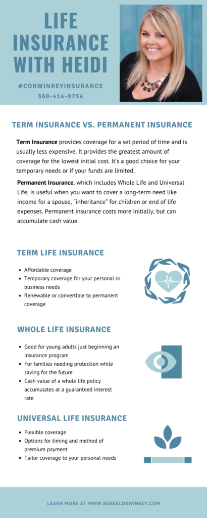 There are two different types of life insurance, and Heidi Budge, our life insurance specialist, is going to briefly explain them in the infographic below!